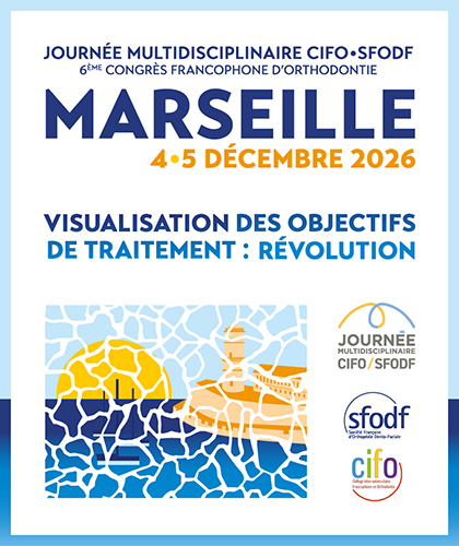 Le 6ème congrès francophone d’orthodontie sera organisé les 4 et 5 décembre 2026 en France, à Marseille, par le Collège Inter-universitaire Francophone d’Orthodontie (CIFO) et la SFODF qui lui consacre sa Journée Multidisciplinaire annuelle et organise en partenariat cette rencontre.