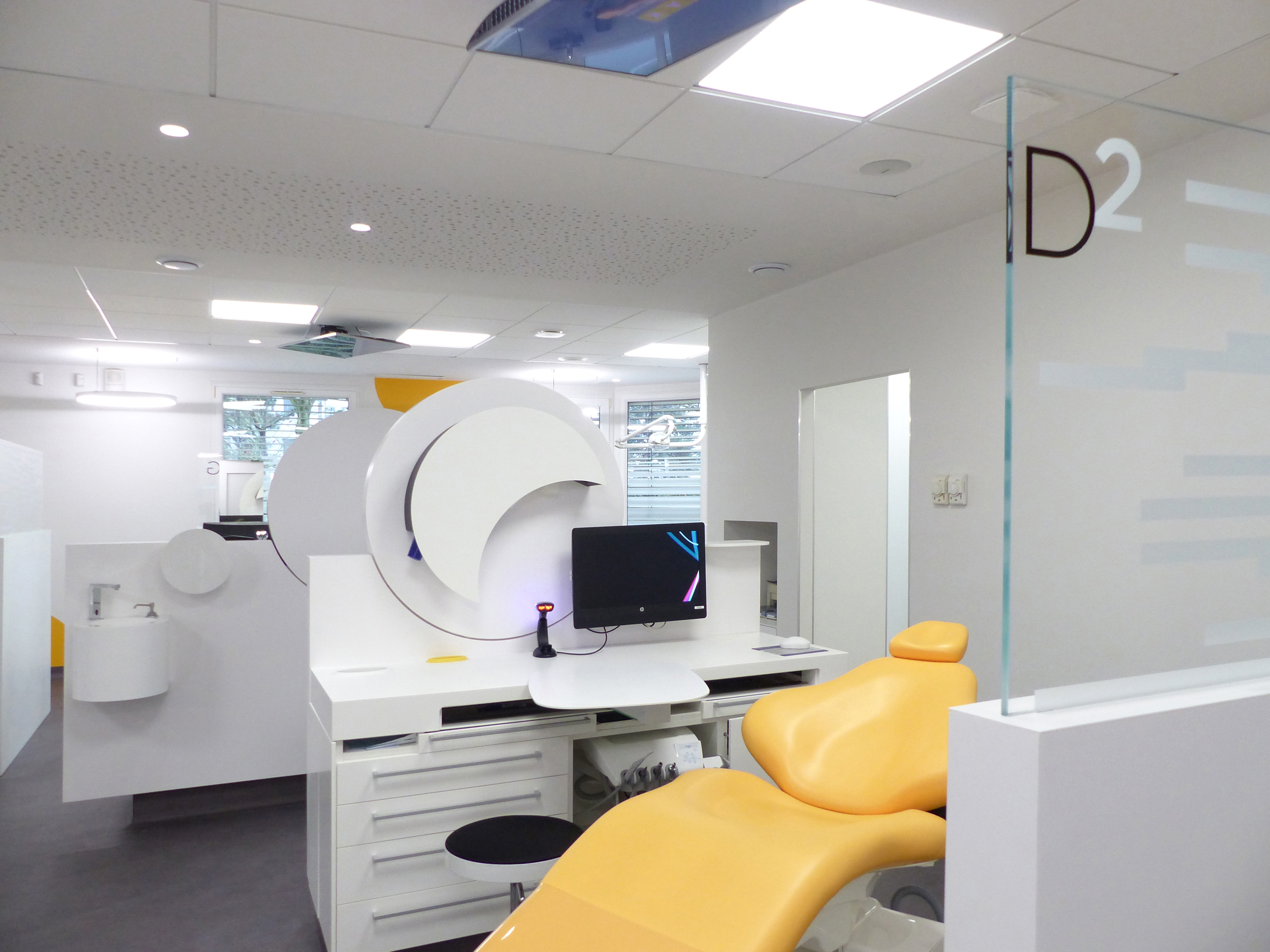 6 fauteuils cliniques + 2 fauteuils de consultation. Entièrement informatisé, empreintes optiques, imprimantes 3D, cône Beam.